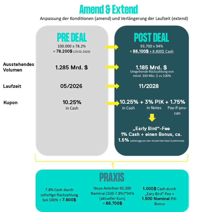 • Komplexe Struktur als Chance: Vielschichtige Deal-Mechanik mit Amend & Extend, höherem Kupon und Incentives